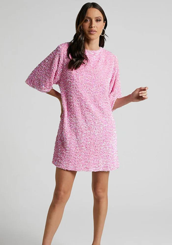 Robe courte droite à paillette élégante et tendance pour soirées chic